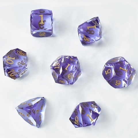 Polyhedral Custom logo Rpg Dungeons and Dragons Gemstone Amethyst Dice Game Set