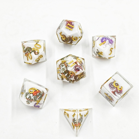 Juego de dados de resina poliédrica de nuevo estilo con logotipo personalizado, dados de piedras preciosas DND para mazmorras y dragones, juego de mesa